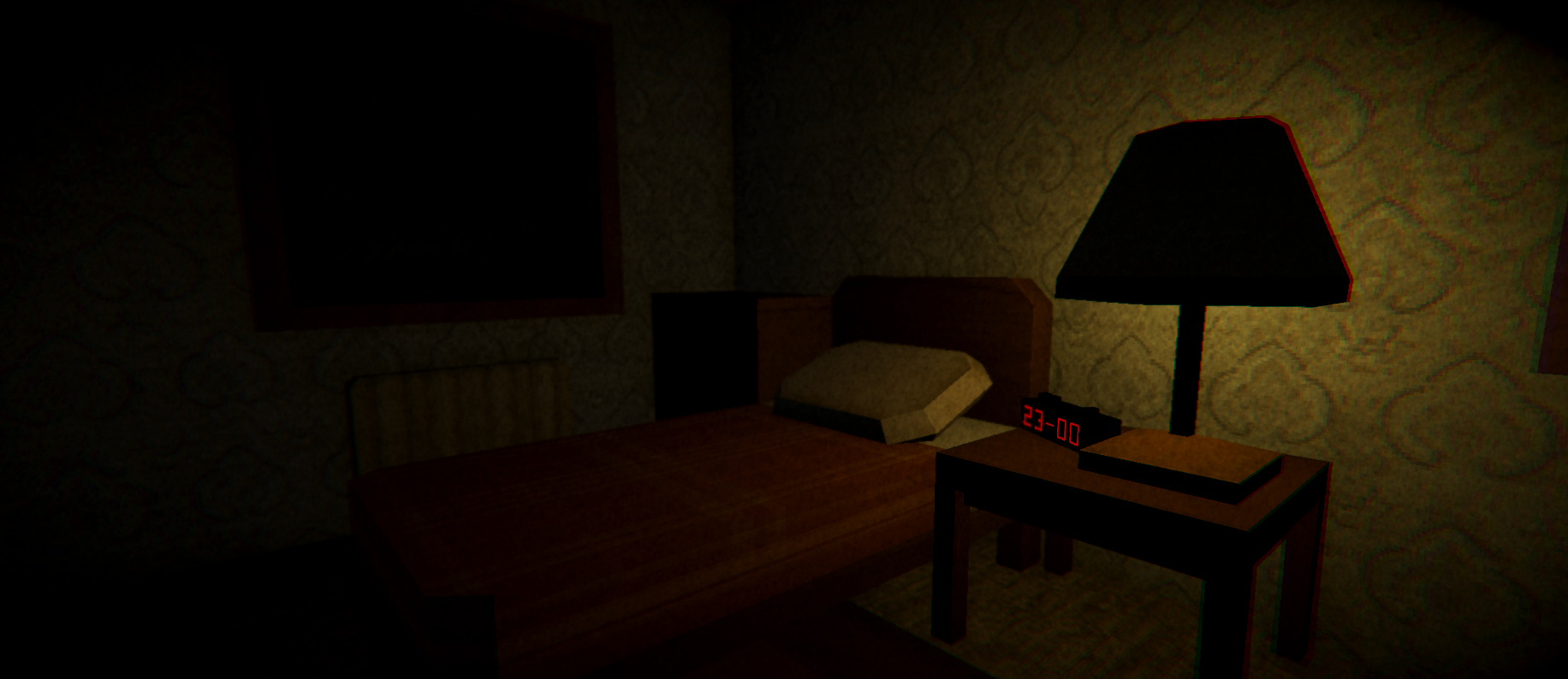 You wake up in your room to the sound of a thunderclap, lightning flashes through the window, illuminating the shadows for just a moment.